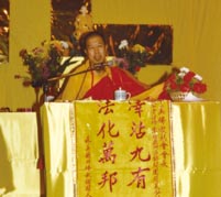 芙蓉市政厅的欢迎仪式中,上人为信众开示。