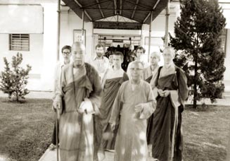 槟城三慧讲堂,竺摩法师带领访问团到各寺庙参观。