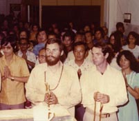 全体肃立唱“炉香赞”,前排右一是果斋居士,