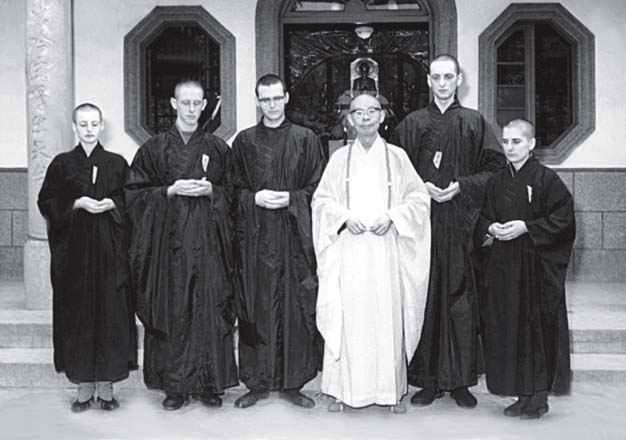 【后记】1968年,美国三藩市暑期楞严讲修班结业之后,有五个美国人出家──三男二女。1969年,这五位出家人在台湾基隆海会寺受具足戒,这是西方人正式有比丘(尼)的开始。三位比丘名为:果前恒谦、果宁恒静、果先恒授;二位比丘尼为:果逸恒隐、果修恒持。