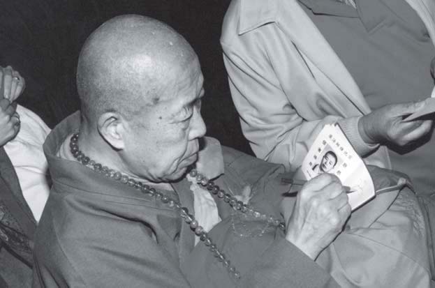 我看他魔障病发作了,我不愿意他再回去做那种事情:“岂有此理!他跟我出家,你们这些妖魔鬼怪还来麻烦他!”所以我就和他的那些狐仙、黄仙斗法。有一个十三岁的皈依弟子,看见我和他们斗法,也想来帮我的忙,却被他吹了一口气,吹得肚子痛得不得了,躺在地上奄奄一息,我又得分神救这个皈依弟子。在二十一天里,我得罪了很多妖魔鬼怪、山妖水怪。我不食不睡,终于治好他的病,而他的五眼从此睁不开了!