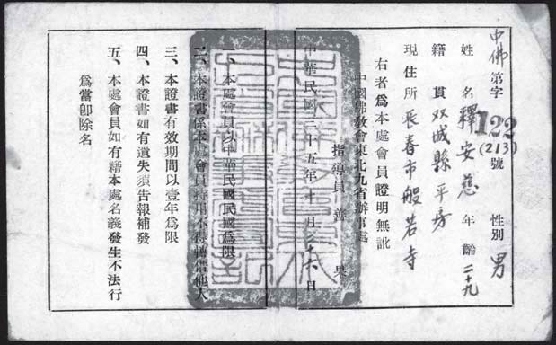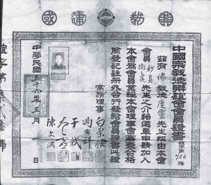 1946年10月26日.上人的佛教会员证 |