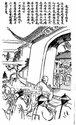 Observing a dragon welcoming the Imperial Tripitaka, and public officials doing the same