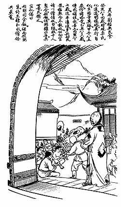 In 1923, the Master was eighty-four. At that time, several strange events were witnessed: a transformational lotus appeared upon the cremation of Mrs. Li; a pagoda was made by ants for Bhikshu Tao Ming; and Bhikshu Chu Hsing transformed himself and attained birth in the West. Next year, 1924. the Master was eighty-five, and spent time rebuilding various shrines and temples. In 1925, when the Master was eighty-six. he transmitted the precepts, explained sutras, and held long meditation sessions. The Master was eighty-seven in the year 1926. In the ensuing few years, large numbers of soldiers plundered Yunnan Province, frightening the people. The rice was ripe, but they did not dare harvest it. The Master, therefore, asked the Army commander not to allow his troops to obstruct the harvest, which was subsequently carried out by the monks. Because of the lack of food, one thousand peasants gathered at the monastery to take their meals. At first, rice was eaten, then gruel, then chaff, and finally just water was all that remained. The people appreciated the fact that the monks underwent the same hardships of life along with them.