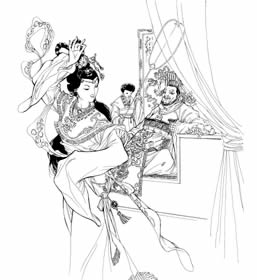 怎样惩罚他呢?就来做他的太太,令他荒淫无度,不理政事。他的叔叔箕子看见他这样,就向他谏正,请他不要宠妲己;他很不愿意听,于是就把箕子圈到监狱里。当时比干又向他谏正;比干也是他的叔叔,是个圣人,非常聪明,非常有智慧。可是比干不知怎样也把这狐狸给得罪了,这狐狸也要报仇,就在纣王面前说比干是圣人,纣王就问她:“你怎么知道他是圣人?”“圣人的心有三毛七孔。你若不信,可以把比干杀了,把他的心拿出来看看,检验检验,若真是这样,我就说得对,证明他是圣人;要不是嘛,我愿意偿他的命。”