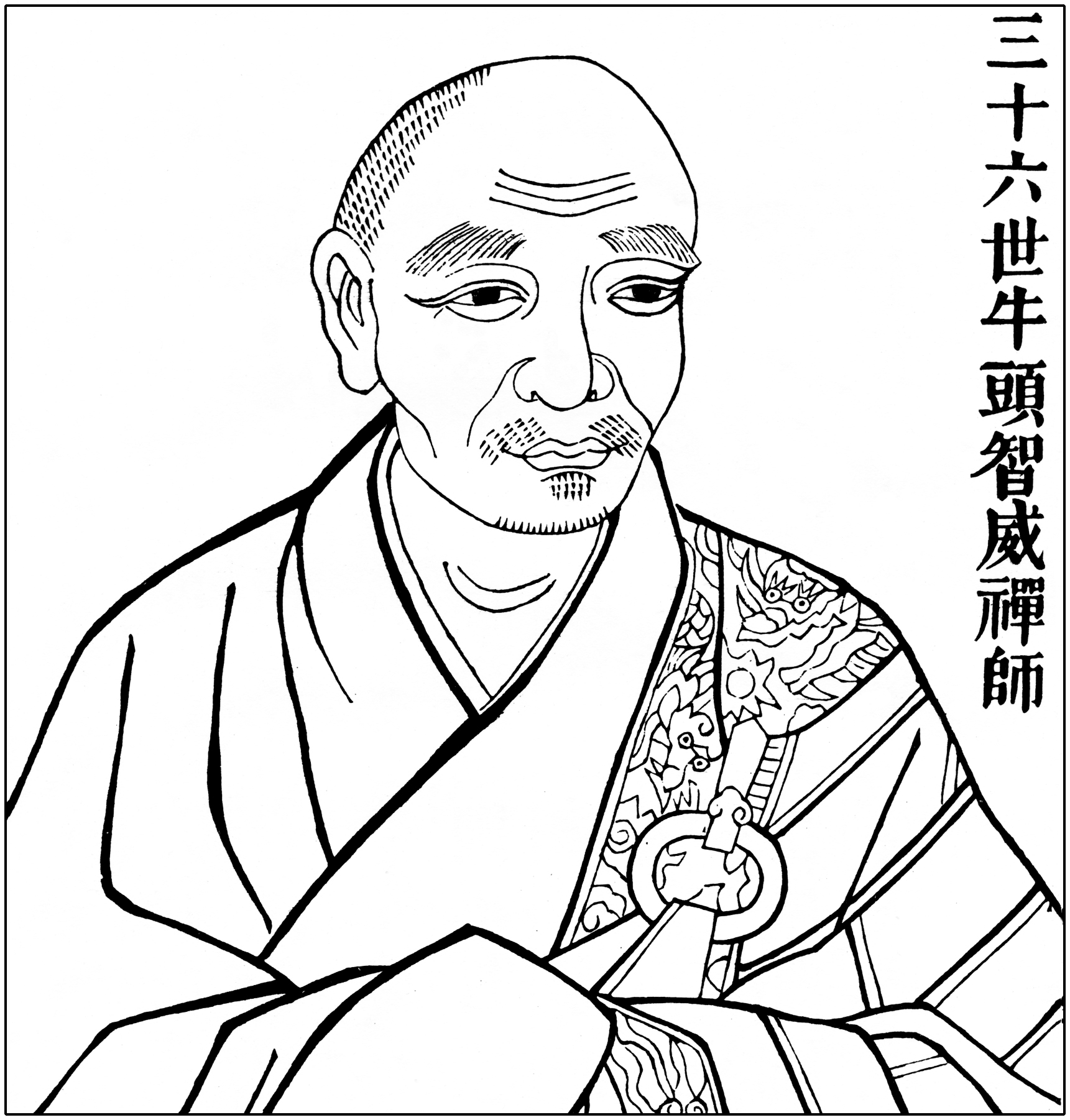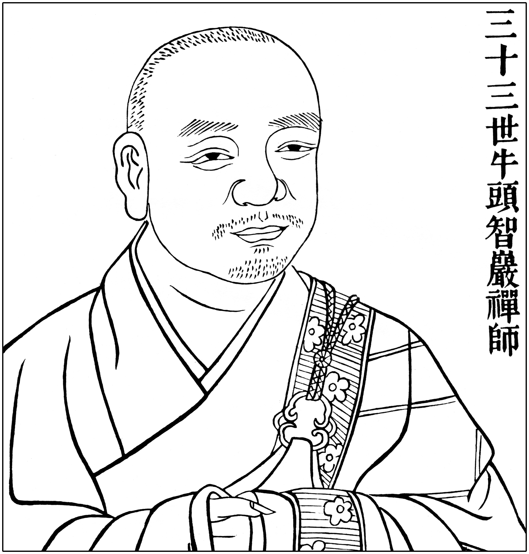 师。润州韦氏子。年十九投茅山落发。后入牛头山北岩之石室。静坐观心。适四祖踵至。问曰心是何物。师无对。遂延祖入庵。祖见虎狼围绕。作怖畏势。师曰。犹有这个在。祖于师座上书一佛字。师竦然不敢坐。祖曰。犹有这个在。师乃稽首请益。祖为说法要。且曰。吾受灿大师顿教法门。今付于汝。绍汝元化。自尔法席大盛。后得上首。付嘱法印。明年正月十三日。不疾而化。