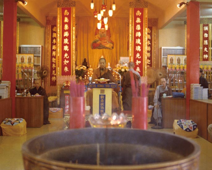 上人于新加坡佛教青年会雨大法雨,普润一切众生。 慧深法师(左)翻译福建话。 新加坡佛教青年会,成立于1960年代, 当时新加坡的佛教界针对青年们不了解佛教、宗教观念日益淡薄的情况, 而成立的佛学研究团体。