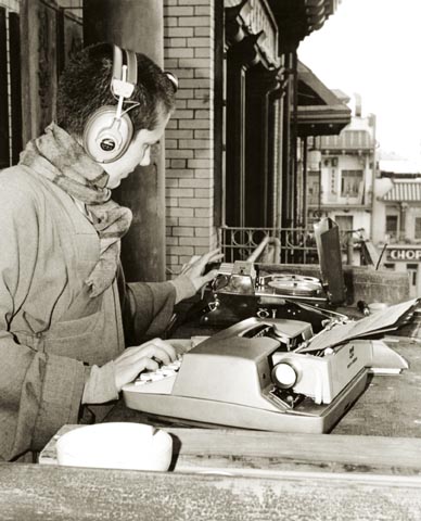 1969年,早期佛教讲堂,弟子在翻译经典。 地点:三藩市中国城天后宫楼上阳台。