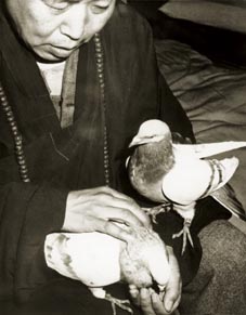 1968年,在三藩市佛教讲堂举行第一次的放生法会, 放生地点在佛教讲堂的屋顶,一共有三十八只鸽子。 除了两只之外,其余的都飞走了。 留下来的两只鸽子,经常参与讲堂的活动。 上人为这两只鸽子分别起名为“十二因缘”和“七菩提分”。