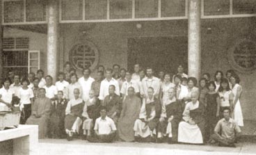北海观亭佛学会顾问祥空法师,领该会同仁与访问团合影。