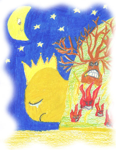 另一个一千年又过去了,它还是任由火烧灼着它,任由城市隆隆的声音震动着它。白天它的泪水往内吞,晚上它则让泪水静静地流下来。它的痛苦是如此的巨大,可是它的泪水却如此的无声无息,以至于没有人知道它的牺牲。