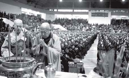 在东北,我的皈依弟子对我都是相信到极点。譬如这儿有个火堆,我对他说:“你跳到火堆里会成佛!”真会有人即刻跳到火堆去。我说:“你跳到海里,就会往生极乐世界!”也会有人立即跳到海里,但是我不说这种话!他们虽然相信我,我绝对不叫他们做这种没有意义的事情,我也不会如此考验他们。那时候有很多人对我的信心是很坚固,不敢毁谤师父一句话,没有人敢说的;因为几次有人毁谤,后来的果报都很厉害,只好来我这儿忏悔。