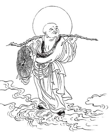 我拿起一个中午吃的馒头,咬了一口,连口水带馒头吐到地上,对他说:“要出家,先把这个东西吃了再说。”我要给他一个考验。他歪着脖子,望望我,就蹲下拿起地上的馒头吃了,也不怕口水、不怕邋遢。我看他孺子可教,还可以造就,我说:“好,我留你在这儿出家了。”他出家以后,病也真的好了;天天拿把扇子,好像济公。没过半年时间,得了五眼六通,有很大的本领,我带他各处给人治病。他的来历是谁呢?你们都知道中国西湖灵隐寺有个济公,这个小孩子就是济公的化身。