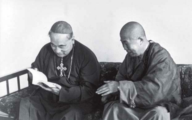 上人和于斌枢机主教于美国加州三藩市金山禅寺。 |