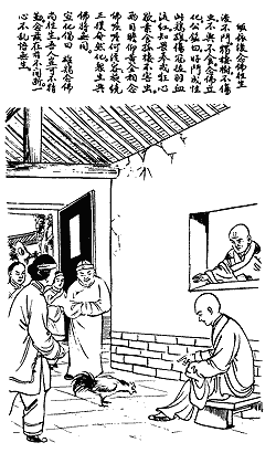 Even the dauntless cock recited "Buddha," and then went off to rebirth,