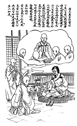 Receiving the monk An Tz'u28 who had traveled ten thousand