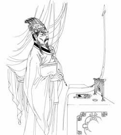 文王访贤,先是派兵去找,这些士兵到了他那儿,一看到他在钓鱼,他就说了:“钓钓钓,大鱼不到小鱼到;小鱼不到,河里的虾米来吵闹!”他说这些兵都像虾米。以后文王又派官员去,也就是小鱼来了,他还是念这个咒,所以把大鱼也给念来了。文王亲自拜访,一看他的样子,胡子长长的,飘然若仙,就请他去辅佐政事。