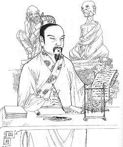 姓萧,名统,字德施,梁武帝之太子。天性仁孝,行为正直,资质明敏,喜爱文学,得力于刘勰 (《文心雕龙》作者)。勰于佛教始谤终信,后出家为慧地法师。太子受其父熏染,笃信佛教,喜诵《金刚经》,将该经分为三十二分。一生精力,集中于古今文学,搜集秦汉至齐梁之诗文,编成文选,后人称为《昭明文选》。古今总汇,是书为弁冕,为后世作文准绳。惜年三十一卒,谥为昭明。萧氏文学造诣颇深,对宫体文有所创作。