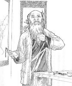 张大千居士,姓张,名房,蜀人,出生于书香门第。天资颖慧,家学渊博,善于绘画。于一九二○年春拒婚,逃至松江禅定寺出家,拜住持逸琳和尚为剃度师,法名大千。旋至宁波观宗寺求戒,与谛闲老法师辩论烧戒疤事,被斥为强词夺理。未受戒,即赴杭州灵隐寺挂单。不久,被友人邀至上海,不料下车后,即被二兄捉押回乡,母逼迫还俗结婚。志切古画,中年隐于敦煌千佛洞,摹习壁画,困苦艰难,过着清淡生活,三年有成。作品风行于世,尤其佛教画像,为艺术珍品,令见者肃然起敬。居士住于美国时,余赠偈颂一幅,曰:“国画第一宿同参,古今中外满大千;风行宇内争先睹,电驰太空比高天。观音示现丈夫相,弥陀亲颂长者颜;游戏三昧虽快乐,莫忘西方紫金莲。”居士好食,非肉不饱,故对烹调颇有研究。晚年居于台北郊外双溪摩耶精舍,以书画自娱。于一九八三年微恙而逝,一代国画名家往矣!