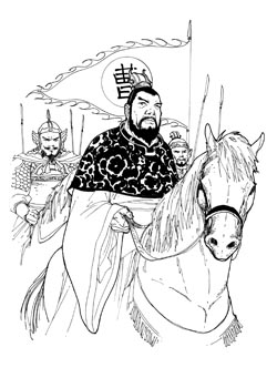 华容道中仅身免:在华容道那儿,他和关公讲人情,说:“我以前对你那么好,现在遇到你,就高抬贵手,放了我好了。”可是,关公明明和诸葛亮立过军令状(注8),如果不把曹操抓回来,回来就人头落地。虽然这样,关公也是妇人之仁,不忍心把他抓回去献功,就把他放了。你看,关公虽然说大义参天,这个地方是﹁妇人之仁﹂,就像女人不太懂这个道理的。那时候若把曹操抓回去,那也就没有三国历史,都没有了,都要重写了。所以关公在这个地方,我认为他是有自私心,因为私人的关系,以私害公了。